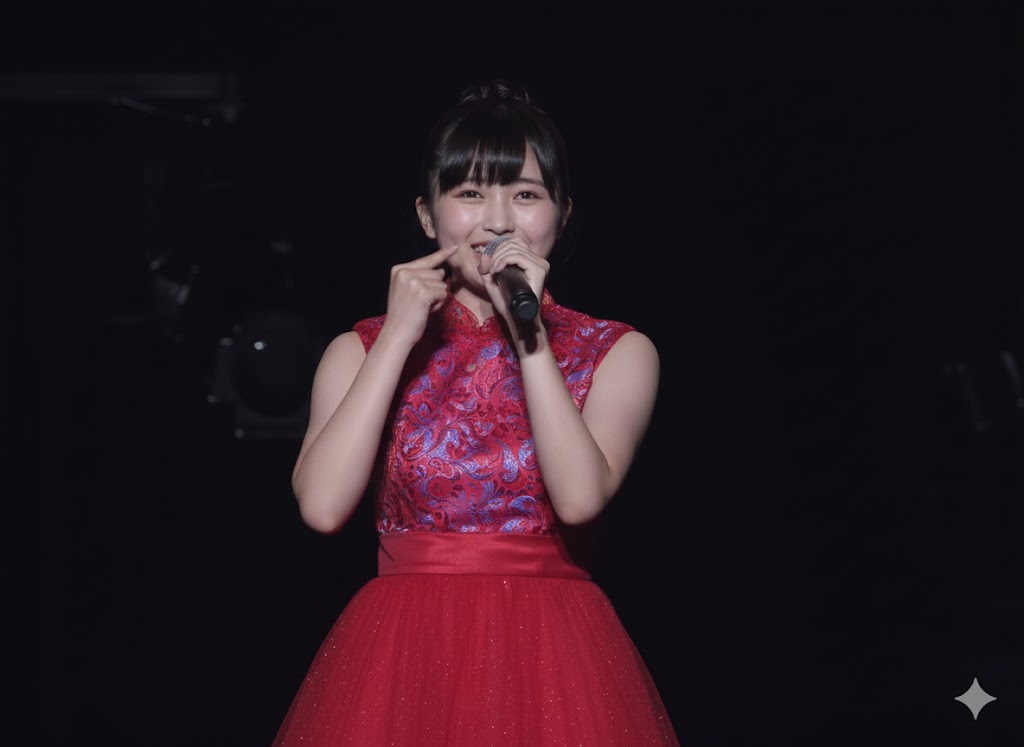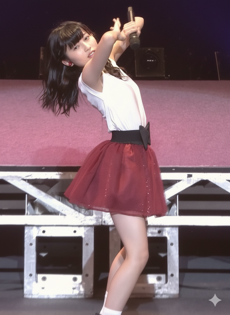 普段の穏やかでふわふわした雰囲気とは打って変わって、ステージでは「白ノースリーブ×赤ミニスカート」の勝負服。